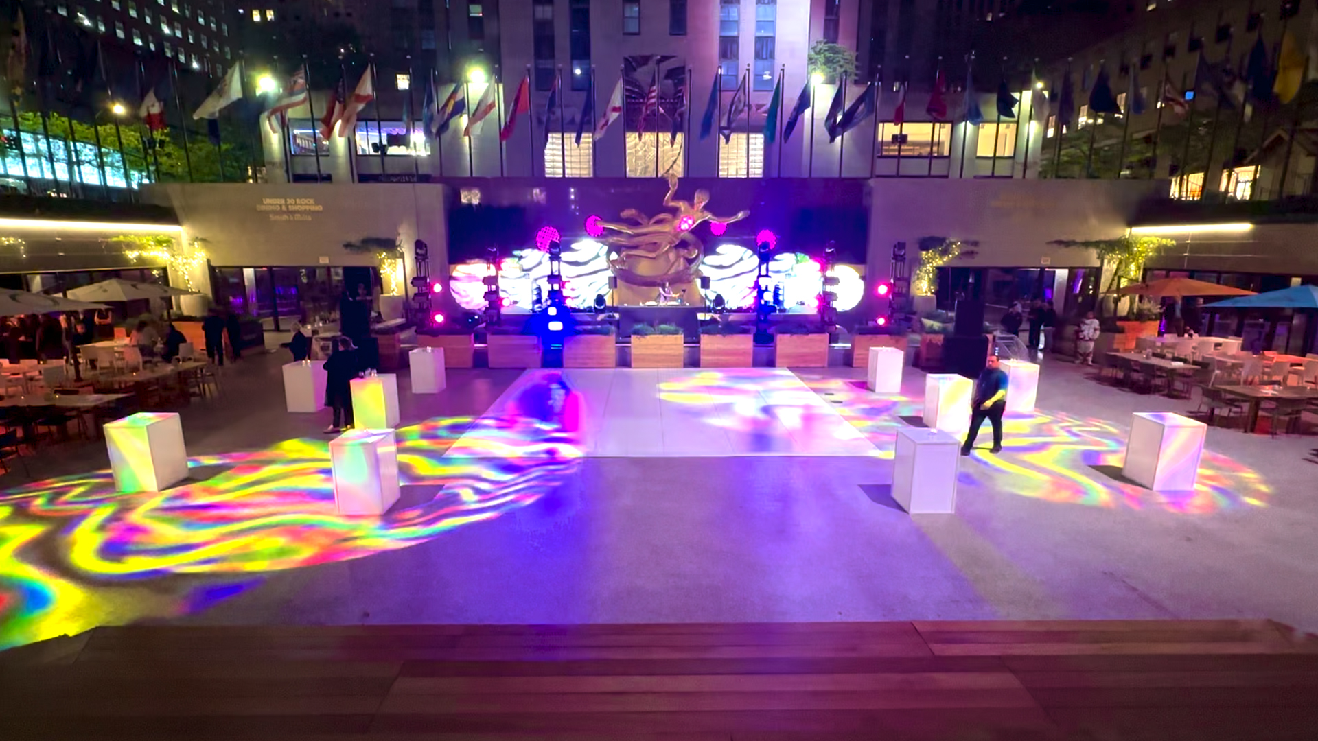 As the night unfolded, the fountain-turned-stage became the focal point for performances and speeches, a symbol of resilience and adaptability in the face of adversity. HighLT Studios’ innovative design ensured that every moment was illuminated with style and flair, creating an atmosphere that was both elegant and electric.